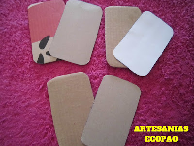 Recortamos 6 rectángulos de cartón. Tres de ellos de cartón grueso y los otros tres de cartón delgado.